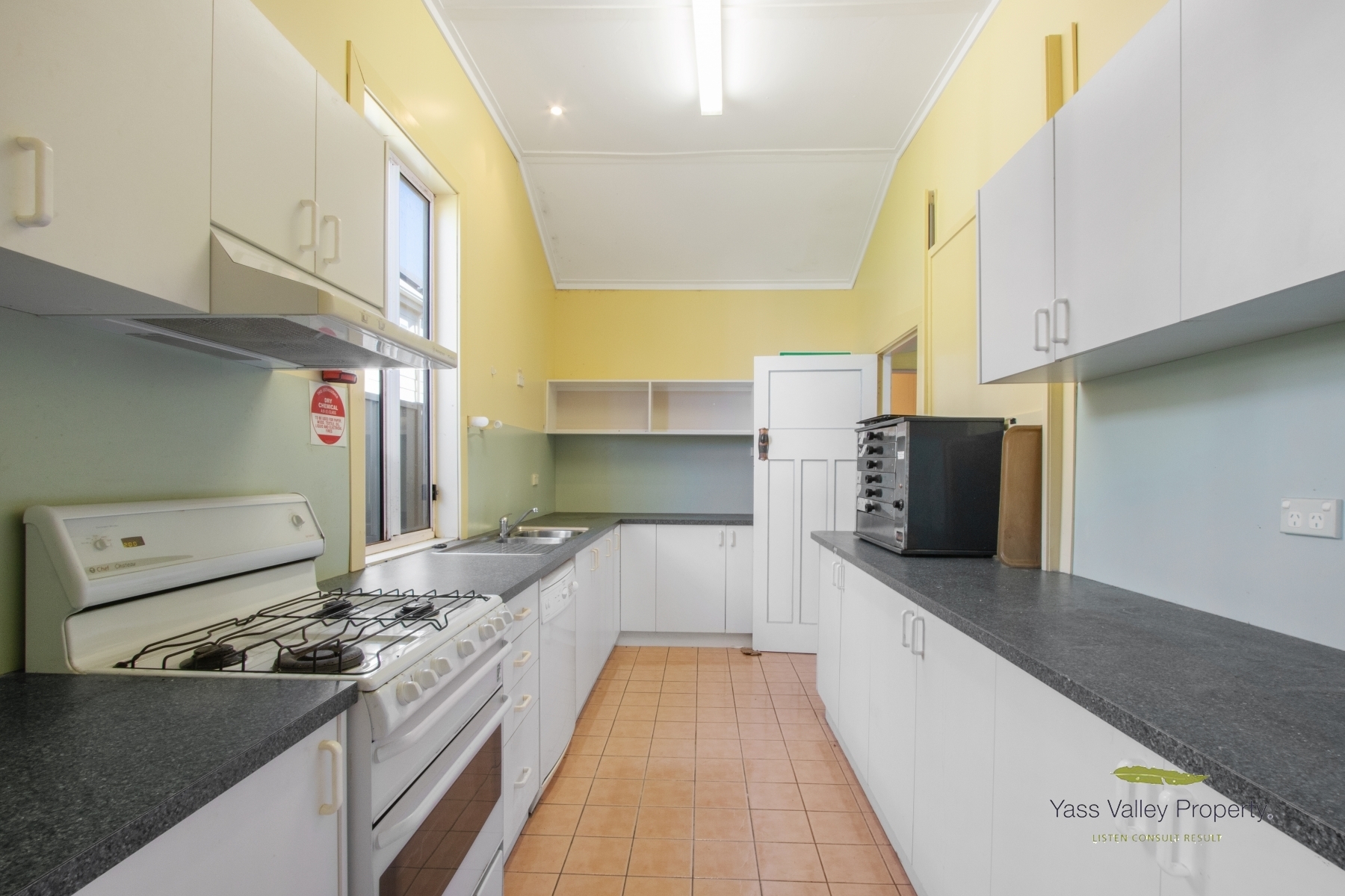 Dining Hall extension: *Kitchen, electric oven and gas top, benches with over and under cupboards, sink, dishwasher, servery window *Natural gas connected *Instantaneous gas hot water service to kitchen only *Polished Cyprus floorboards,
