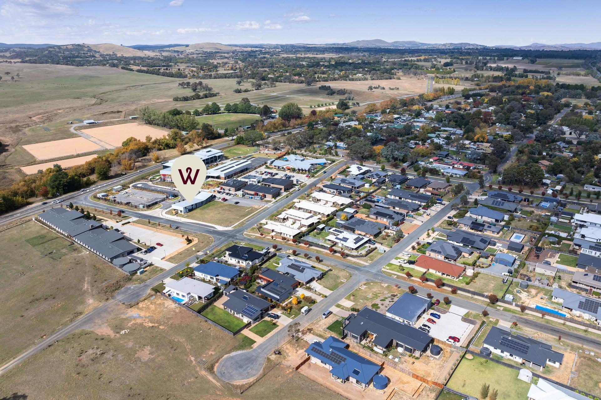 The 3,432sqm RU5 (Village) zoned site currently has a completed 297.4sqm commercial suite (with long term tenant in place – Murrumbateman Health Hub/General Practice) and is situated at a high-profile and easily accessible location – approx.. 150m from the Barton Highway, adjacent to an established Hotel and Fairley Village, walking distance to local amenities and transport.
